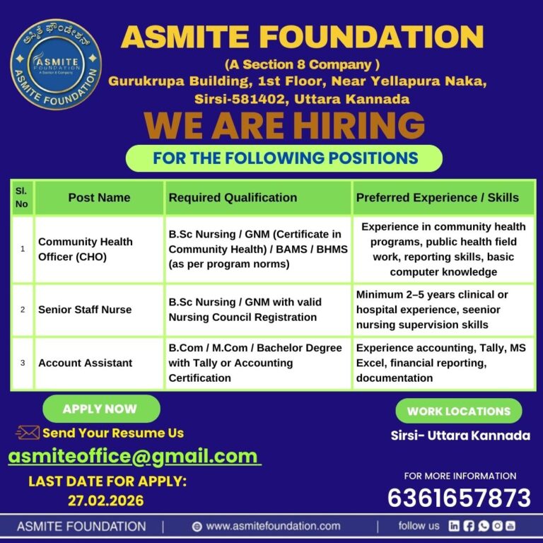 Head Office: Gurukrupa, 1st Floor, Near Yellapura Naka, Sirsi, Uttara Kannada, Karnataka, India Phone: +91 99802 47048 Email: asmitefoundation@gmail.com